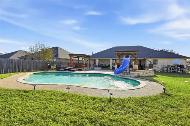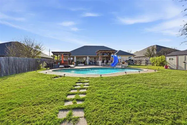 The backyard is truly an oasis—perfect for entertaining, relaxing, or enjoying year-round fun. You’ll love the sparkling pool with a slide, the separate spa, and two covered outdoor living areas. The impressive outdoor kitchen and numerous added amenities make this space feel like your own personal retreat.