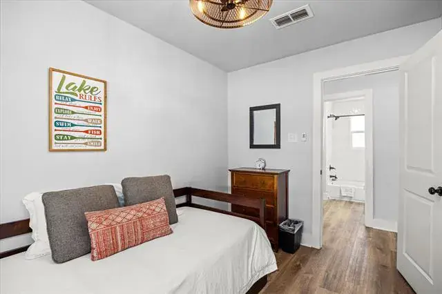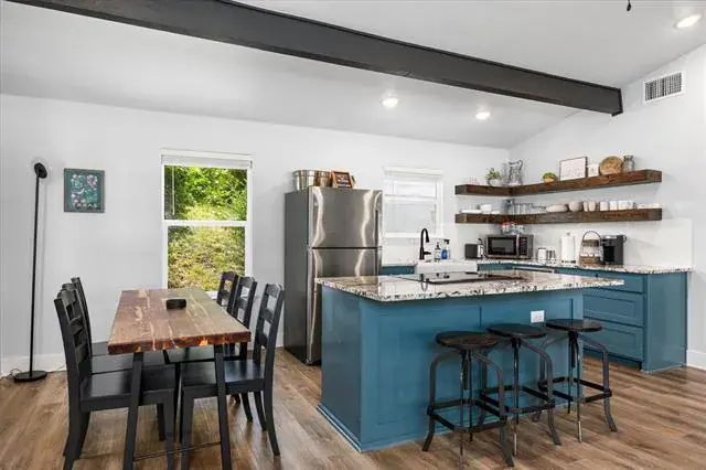 lake house was fully renovated and offers 3 beds, 1 bath, and a modern full kitchen with oversized island. Enjoy