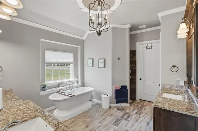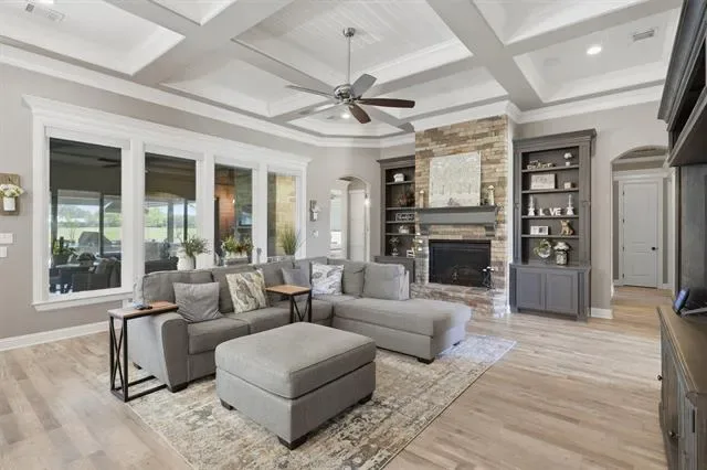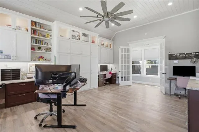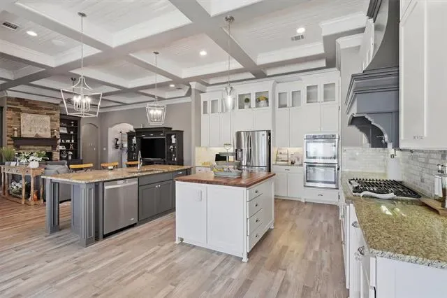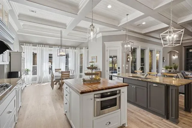 Welcome to Luxury Living in The Peninsula where Elegance, Comfort, and Thoughtful Design come together on nearly two Beautifully Maintained Acres inside a Private Gated Community near Lake Granbury. This stunning home immediately captivates with soaring ceilings and an abundance of natural light that fills every space, creating a bright and inviting atmosphere. Designed with both everyday living and entertaining in mind, the heart of the home is a true dream kitchen featuring high-end finishes, a kitchenette providing extra counter space, and custom cabinetry throughout allowing ample space for gathering with family and friends. A Beautiful Custom-Built Addition completed in 2020 features its own private entrance, an office or craft room space with custom working areas, built-in craft cabinets, custom built-in dog crates, and a secondary primary bedroom and bath featuring two private bathroom and vanity spaces. The thoughtfully designed floor plan offers flexibility and privacy perfect for multi-generational living or hosting guests in style. Step outside to experience seamless indoor and outdoor living where gorgeous window doors open wide to the outdoor patio off the enclosed outdoor living area, complete with a cozy fireplace and inviting space perfect for year-round enjoyment. A custom designed outdoor kitchen overlooks the peaceful backyard, creating the ultimate setting for entertaining under the Texas Sky. With its prime location near Lake Granbury, expansive acreage, and gorgeous custom features throughout, this exceptional property offers the perfect blend of privacy, sophistication, and luxury. Schedule your private showing Today and experience it for yourself.