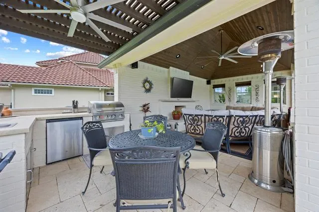 Step outside and experience a true entertainer’s paradise. The 25’x50’ resort-style pool and spa is complemented by a fully equipped outdoor kitchen, a cozy fireplace, and generous patio space for year-round enjoyment. Take the short walk down to your 2,000 sq ft premium boat dock, which has room for 2 boats, 2 jet skis, as well as sitting areas, sunbathing deck, and outdoor shower. This dock is ideal for boating, fishing, or simply soaking in the serene beauty of the lake. This property delivers the perfect balance of luxury, functionality, and outdoor living—offering a rare opportunity to own a one-of-a-kind lakefront estate that truly has it all. Schedule your private showing today and experience lakeside luxury at its finest!