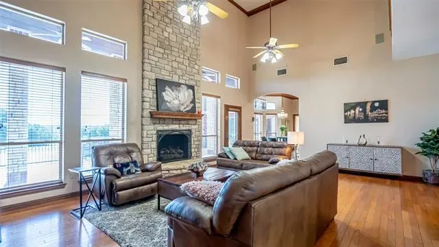 Come see this impressive custom home built by award winning builder Chris Thomas in the luxurious subdivision of The Peninsula on Lake Granbury. Dramatic details throughout, elegant curved staircase, warm & inviting family room w gas log fireplace, formal & casual dining areas, beautiful wood floors, doors, ceilings & trim. Kitchen is complete with huge walk-in pantry, solid surface counters, natural gas range, stainless steel appliances, RO water system. Outdoor living area has a large deck with retractable awnings, with a fabulous lake view! Oversized concrete driveway provides ample parking. Over 1,800 sf of attached garage-workshop & RV garage plus 50amp elec, water & sewer hookup, remote door opener. Workshop is fully insulated w half bath & window AC. New class 4 composition roof installed seven months ago.