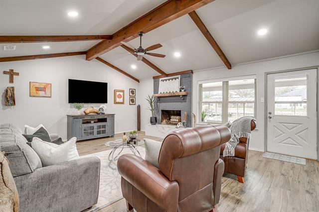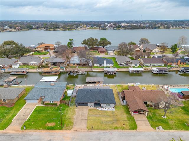 This is the one! Thoughtfully updated Lake house in the Heart of Granbury! Located on one of the largest and deepest manmade canals which is situated at the mid-point of beautiful 24-mile-long lake Granbury. Close proximity to 3 waterfront dining options, and just across the water from historic Granbury square. Enjoy the fantastic Independence Day fireworks show and Fall Lakefest drone show with ease! The home has an open living area as well as a split bedroom design, updates are abundant with new LVP and tile flooring, brushed nickel plumbing fixtures, updated bathrooms with walk in showers, and new kitchen appliances. Tons of natural light from plentiful windows bring in great views of the water! Outside you will find a large covered back patio that extends across the back of the home. Entertainment options are plentiful with an outdoor fire pit, dock fishing opportunities and an expansive stamped concrete patio that lends wonderfully to outdoor games with friends. No city taxes and no Hoa, short term rentals are allowed. The future will bring Lakeview Landing within walking distance for lakefront shopping, dining, and recreation.