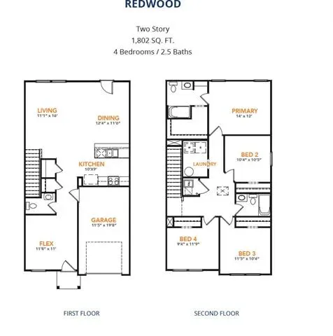 MLS# 21188009 – Built by NHC – Jun 2026 completion! ~ Model 1802 A1 – Redwood The Redwood Plan from our Freedom Series delivers spacious comfort and smart design, ideal for modern living. This 2-story home offers 4 bedrooms, 2.5 bathrooms, a 1-car garage, and 1,802 square feet of thoughtfully crafted living space. As you step inside, you’ll pass a versatile flex room, perfect for a home office or playroom, and a conveniently located half bathroom. The hallway opens to a bright and airy living area where the kitchen, complete with an island, overlooks the dining area and family room, creating the perfect backdrop for family time and entertaining. The stairs, located in the family room, lead to the upper level. Here, you’ll find the private primary suite, complete with a bathroom and walk-in closet. Three additional bedrooms, a full bathroom, and the conveniently located laundry room complete this level, ensuring functionality for your daily routines.