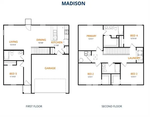MLS# 21249136 – Built by NHC – Aug 2026 completion! ~ Model 1804-2 B1 Madison The Madison Plan from our Liberty Series combines style and functionality in a layout that maximizes space for your family’s needs. This 2-story home features 5 bedrooms, 3 bathrooms, a 2-car garage, and 1,804 square feet of well-designed living space. As you step inside, you’ll find a main-level bedroom and a full bathroom, offering a convenient option for guests or a home office. Beyond that, the home opens to a bright and airy living area, where the family room, dining area, and open kitchen with a central island come together seamlessly to create a welcoming space for entertainment and everyday living. Stairs located in the family room lead to the upper level. Upstairs, the primary suite serves as a private retreat, complete with an ensuite bathroom. The upper level also includes three additional bedrooms, another full bathroom, and a conveniently located laundry room to simplify daily tasks.