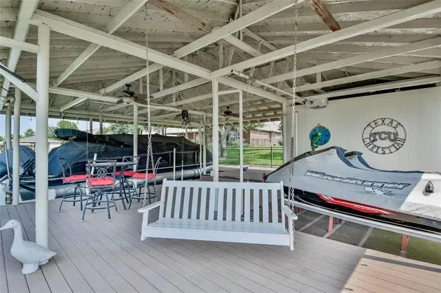 Welcome to 2208 Waters Edge Drive, where timeless design meets exceptional lakefront living. This elegant 3-bedroom, 3-bath home offers a spacious and versatile layout with three living areas and two dining spaces, designed to accommodate both everyday living and stylish entertaining. The gourmet kitchen is the centerpiece of the home, featuring dual islands, custom cabinetry, a built-in wine fridge, and an open flow that makes hosting effortless. A 3-car garage provides plenty of space for vehicles, storage, and lake toys, adding both convenience and functionality. Quality and craftsmanship shine throughout, from the durable Class 4 shingles to the expansive frameless windows that overlook the backyard and lake, flooding the home with natural light and panoramic views. The home’s thoughtful design continues outdoors with an expansive covered patio that functions as a true outdoor living room. Complete with a fully equipped outdoor kitchen and a dramatic stone fireplace, this space is ideal for year-round gatherings. The backyard is a true retreat, featuring swaying palm trees and easy access to the lake, while the property’s prime position along the wide canal provides stunning water views, effortless boating and swimming. Your private dock offers convenient storage and ample room for both a boat and jet skis. A fenced area for boat trailer parking adds even more practicality, that is located off the side of house. Blending indoor sophistication with unmatched outdoor amenities, this property offers the perfect balance of comfort, convenience, and lakeside luxury on Lake Granbury.