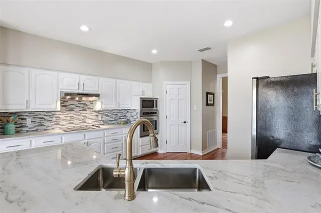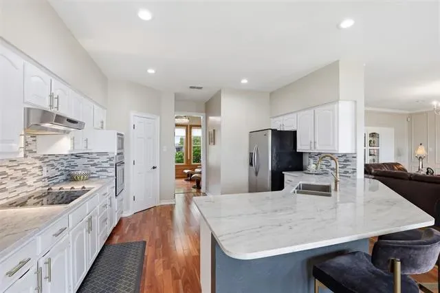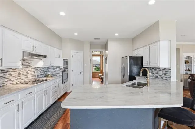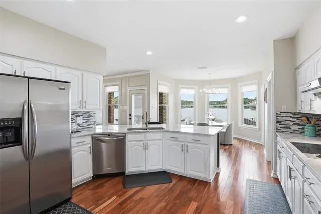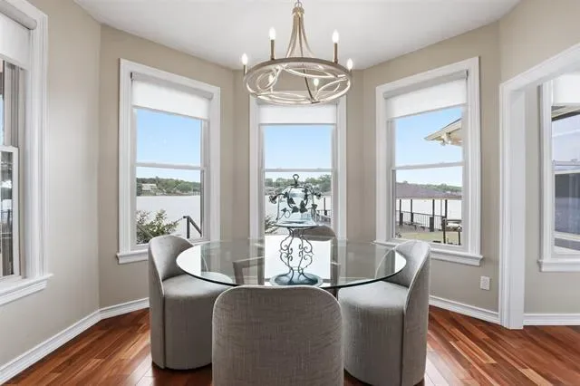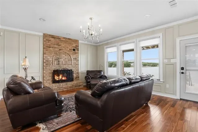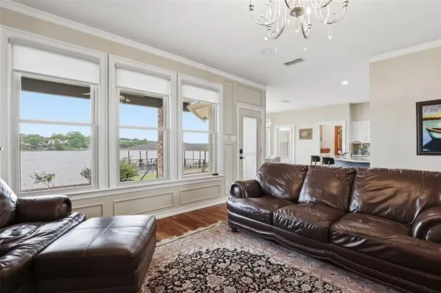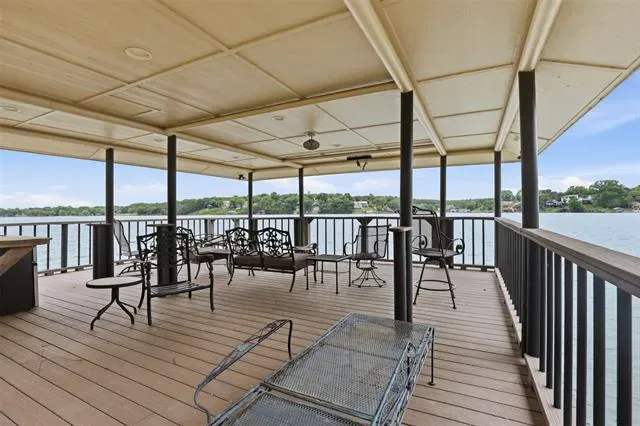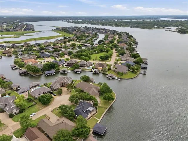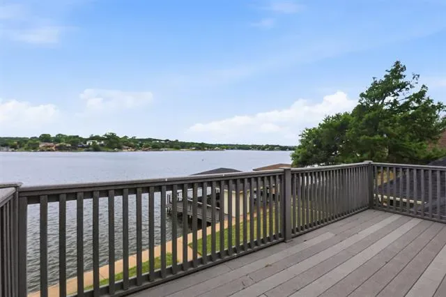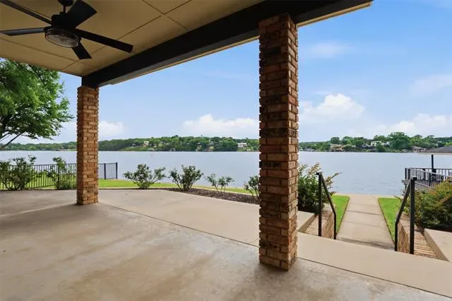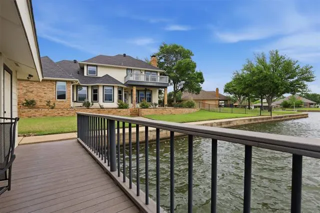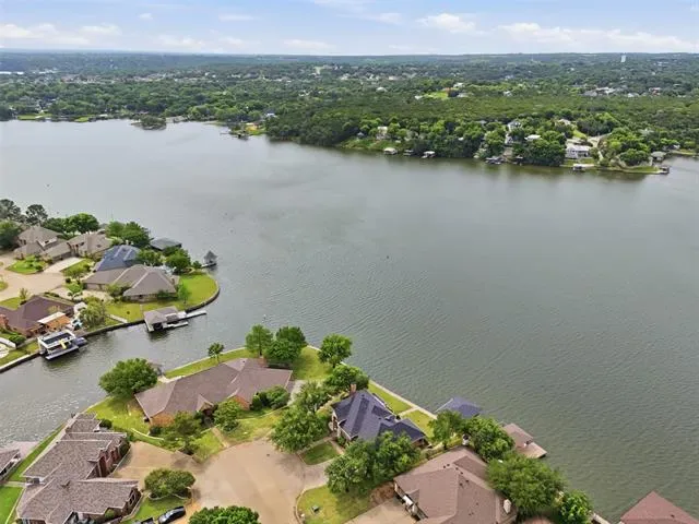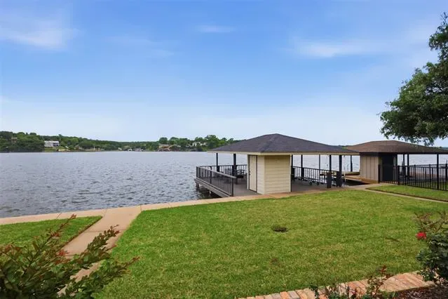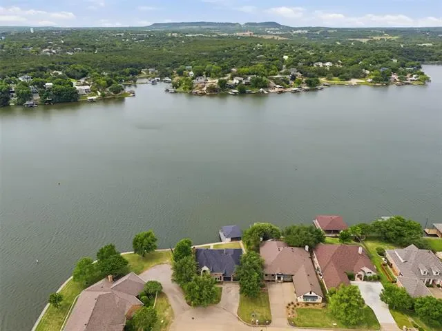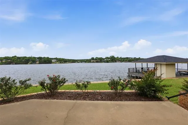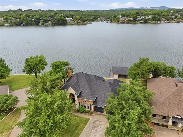 OPEN HOUSE SUNDAY April 26 1 to 3pm Waterfront dream on Lake Granbury’s Waters Edge. This lovely 3 bedroom, 3 bath, 2-car garage waterfront retreat sits on open water with 110 feet of shoreline, welcoming you with an impressive front facade and an iron decorative entry door. Waters Edge, a quiet waterfront subdivision, the home offers sweeping views of the main body of the lake and a lifestyle built for tranquil lake living. Key features include a concrete seawall, a covered party dock with composite decking, sprinkler system, large trees, and a landscaped lawn. A large covered back patio invites outdoor living and morning coffee, while a private deck off the upper-level bedroom is perfect for sunshine therapy and lake vistas. Interior highlights include abundant windows framing the lake from every angle, a large living area with a fireplace, and a mix of wood, marble, and tile flooring. The updated kitchen showcases light quartzite counters and flows into a second living area or formal dining space off the kitchen. The primary suite is on the first level with a generous walk-in closet. Upstairs, the secondary bedrooms share a Jack-and-Jill bath. A coffee bar with a built-in fridge center on the bedroom level add convenience. Experience lake life at its finest in this peaceful lakeside retreat.