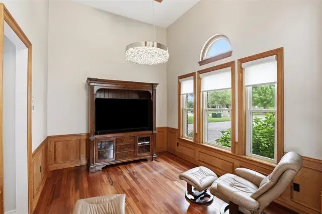 Built-in Features, Cable TV Available, Chandelier, Decorative Lighting, High Speed Internet Available, Natural Woodwork, Open Floorplan, Paneling, Walk- In Closet(s)