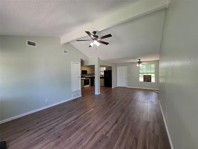 Newly remodeled and beautiful! Open concept, new hard flooring, new paint, super clean! Fridge is included. Ceiling fans in all rooms and vaulted ceilings in the master bedroom and living room. Large, fenced backyard (new wood fence) with large storage shed and lots of shade. Corner lot. Quiet, pleasant neighborhood with community pool. Great location on Ft Worth side of Granbury. HVAC 2023. New attic insulation 2023. Foundation repaired 2022 with lifetime warranty. Half bath is large enough to add a shower if desired. HOA is only $25 per YEAR. Property includes two lots. Lot 615 Longhorn Trail is used as the backyard.