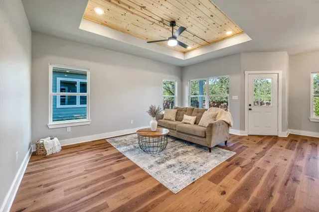 This beautiful new construction home in Granbury, TX offers 3 bedrooms, 2 bathrooms, and 1,414 sq. ft. of living space on the highly desirable Fort Worth side of Granbury, making it an ideal choice for first-time buyers, investors, or anyone seeking a low-maintenance home near Lake Granbury. Thoughtful design meets modern efficiency with features such as spray foam insulation, energy-efficient construction, upgraded fixtures, stainless steel appliances, and a fully sodded yard for immediate curb appeal. Inside, the open-concept layout creates a bright, welcoming space that flows seamlessly from the living area to the dining and kitchen spaces—perfect for everyday living or entertaining. The spacious primary suite offers a comfortable private retreat, while two additional bedrooms provide flexibility for family, guests, or a home office. Located in the sought-after Western Hills Harbor lake community, residents enjoy convenient access to a private boat launch, fishing pier, community swimming pool, neighborhood park, lake access, and recreational areas, making it easy to enjoy boating, fishing, kayaking, and outdoor activities year-round. Just minutes from Historic Granbury Square, shopping, dining, medical facilities, and a convenient commute to Fort Worth, this home offers the perfect combination of new construction value, lake-community living, and everyday convenience.