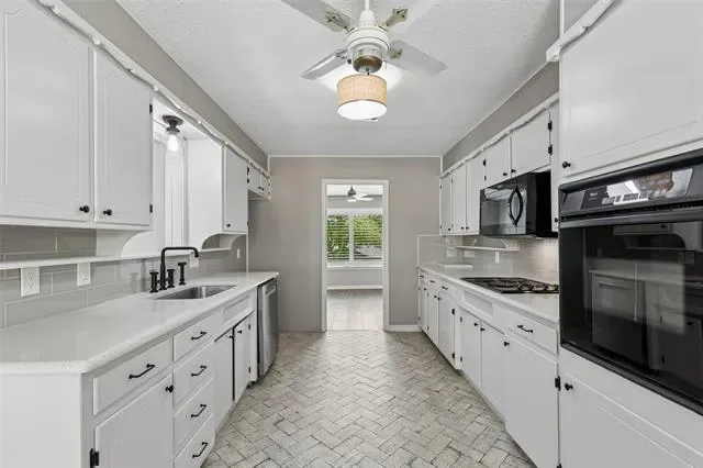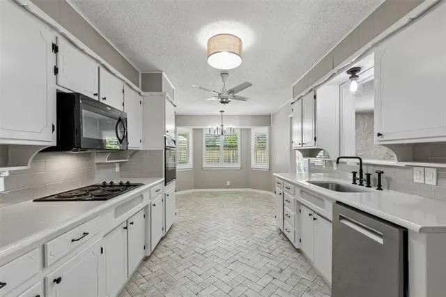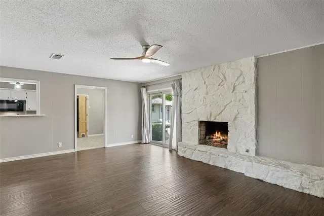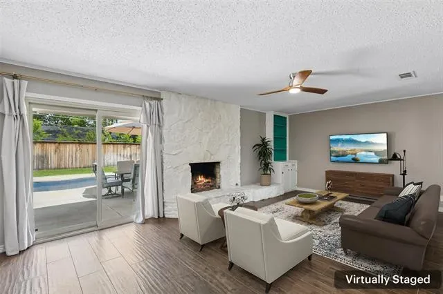 Updated 3 bedroom, 2 bath Haltom City home with pool! Nestled in a well-established neighborhood, this charming home offers a warm and inviting atmosphere with thoughtful details throughout. A spacious living room serves as the heart of the home, featuring a beautiful stone gas fireplace and picturesque windows that frame views of the yard, filling the space with natural light. The kitchen is full of character, highlighted by a cozy breakfast area with a bay window—an ideal spot to enjoy morning coffee. French doors open to a formal living and dining area, providing flexibility for gatherings, entertaining, or a quiet retreat. The home also includes a large utility room with additional storage, along with an over-sized garage offering ample space for parking and organization. Outside, the generous yard is well-suited for outdoor enjoyment, whether hosting gatherings or simply relaxing. Sprinkler system for front and back. A charming cottage-style storage building adds both function and appeal. Residents appreciate the neighborhood pool and the welcoming sense of community. The area offers a close-knit feel with opportunities to connect and enjoy everyday living. This property blends comfort, functionality, and a desirable setting, making it a wonderful place to call home. 3D tour online!