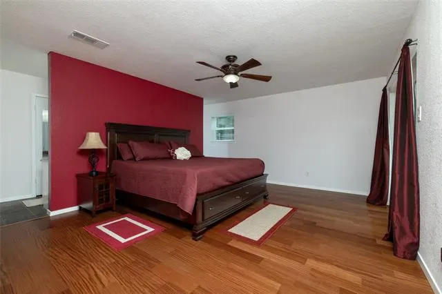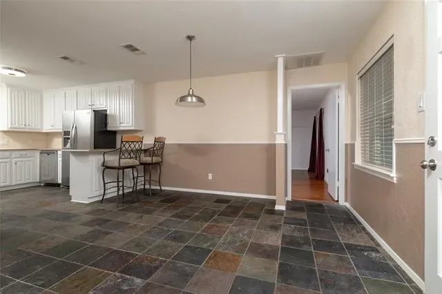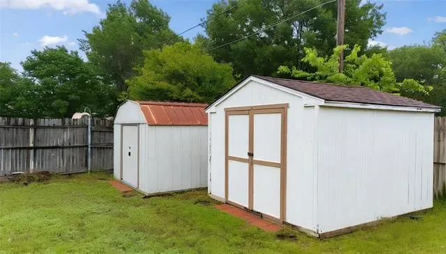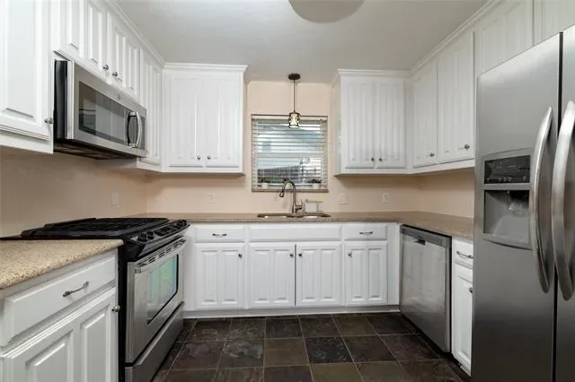 A Rare Gem nestled in a well established neighborhood. It offers 2 Primary Bedrooms plus 1 additional bedroom, 1 Living area, 1 eating nook plus a Dining area, gas cooktop, plantation shutters, breakfast bar, slate flooring in kitchen and eating nook, granite counters with tiled backsplash, wood laminate in 1st DA, ceramic tile in 2nd Primary and the 3rd bedroom. There are lots of updates throughout, a brick-walled Wood-burning fireplace, Marble entryway, and large backyard with 2 storage sheds. In addition to the 2 car garage there is Boat or RV parking. All appliances, White Washer and Dryer with pedestals plus the Stainless steel refrigerator remain. Foundation warranty is transferable.