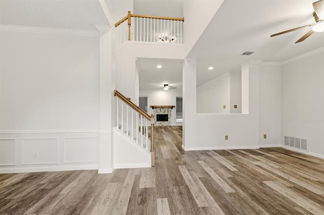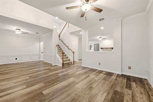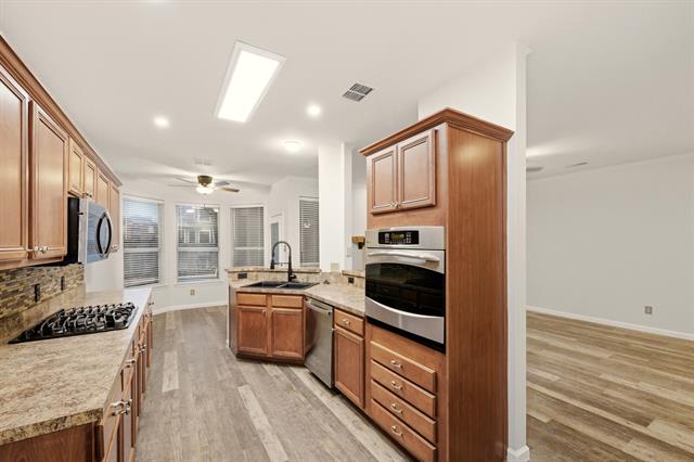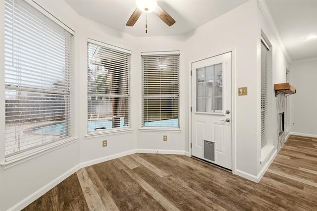 Beautiful 4-bedroom home offering generous living spaces and a bright, inviting layout. The large two-story living room creates an impressive first impression, with an open feel and plenty of natural light. An additional upstairs loft provides flexible space perfect for a second living area, playroom, or home office. The kitchen features a flat-top electric stove, ample cabinetry, and a huge breakfast area ideal for casual dining. A split-bedroom design offers privacy, with the primary suite including a charming window seat. Outdoors, enjoy a large fenced-in backyard with a covered patio overlooking the pool area—perfect for relaxing or entertaining. Conveniently located in Haltom City, this home combines comfort, space, and accessibility in a desirable setting.