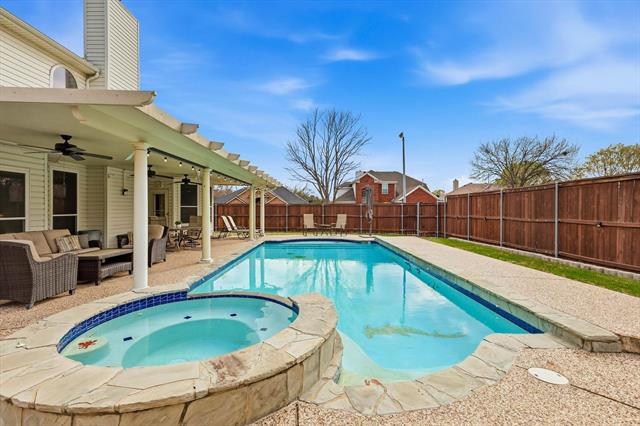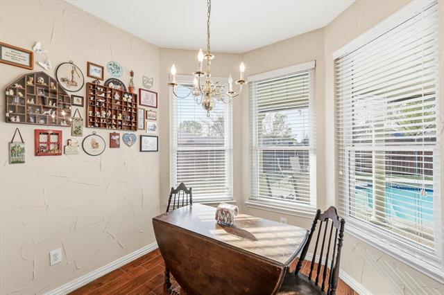Nestled on a quiet cut de sac within a peaceful neighborhood, This one-owner beautifully updated 4-bedroom, 2.5-bath home sits on a desirable corner lot. Downstairs features two spacious living areas and two dining spaces, creating flexibility for both everyday living and entertaining. The updated kitchen is truly the heart of the home, showcasing stainless steel appliances, modern finishes, and an abundance of cabinetry. The oversized primary suite is conveniently located on the main level and serves as a private retreat with a beautifully updated ensuite bath and direct access to the outdoor patio and pool, ideal for morning coffee or winding down in the evening. Upstairs, you’ll find three additional bedrooms, a full bathroom, a loft, and an additional sitting or homework area, offering room for everyone to spread out. Step outside to your own backyard oasis complete with a sparkling pool and outdoor shower, perfect for Texas summers. All of this, just minutes from shopping, dining, and entertainment. Located in Birdville ISD with convenient access to two major highways. Many updates to list! This home offers the perfect blend of space, functionality and convenience.