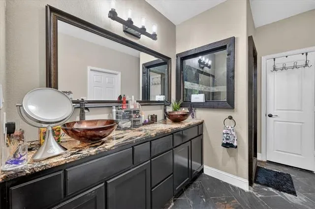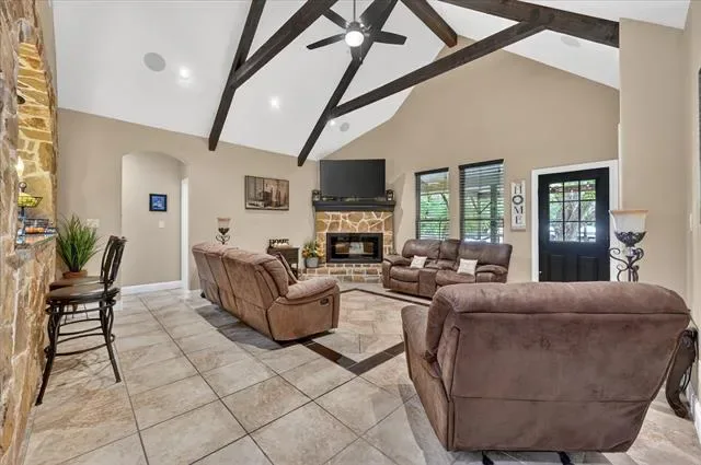 Welcome to this beautifully maintained single-story home situated on a spacious half-acre lot in the Golden Gardens Addition of Haltom City. Offering 3 bedrooms, 2 bathrooms, a designated home office, and 2500 plus square feet of living space. This home combines comfort, functionality, and exceptional outdoor living. Step inside an open-concept layout featuring tile flooring throughout the main living areas, recessed lighting, and a seamless flow between the living room, dining area, and kitchen-perfect for everyday living and entertaining. The kitchen features ample cabinet space, granite countertops, a center island, and a breakfast bar overlooking the main living space. The primary suite is thoughtfully positioned away from the secondary bedrooms and features a spacious layout, dual vanities, and a walk-in closet. A bonus feature of this home is the converted attic, providing additional usable space ideal for a game room, guest bedroom, or flex space. Step outside to an inviting backyard designed for entertaining. The extended covered patio features stamped concrete, recessed lighting, and a ceiling fan, offering a comfortable, versatile outdoor living space ideal for year-round gatherings. The extended driveway leads to an additional detached carport, allowing for up to two covered parking spaces in addition to the attached two-car garage. Conveniently located just minutes from Downtown Fort Worth and the Fort Worth Stockyards, this home offers easy access to dining, entertainment, and major highways, all within the highly regarded Birdville ISD.