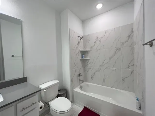 Modern kitchen with quartz countertops, large island, and stainless appliances. Conveniently located near Hwy 820, 377, I-35, and DFW Airport.