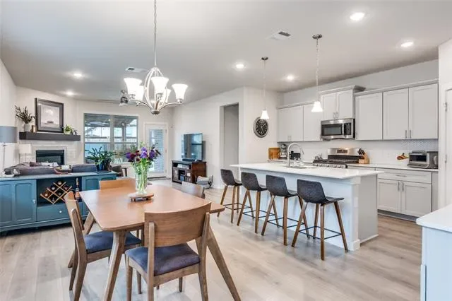 Come see this beautifully updated one-story home featuring 4 bedrooms, 2.5 baths, and a rare 3-car garage, offering the perfect blend of style, comfort, and functionality. From the moment you walk in, you’ll notice the thoughtful updates throughout, including new carpet, designer lighting, and updated ceiling fans that give the home a fresh, modern feel. The inviting living area showcases a stunning designer tile fireplace, creating a sophisticated focal point for everyday living and entertaining.