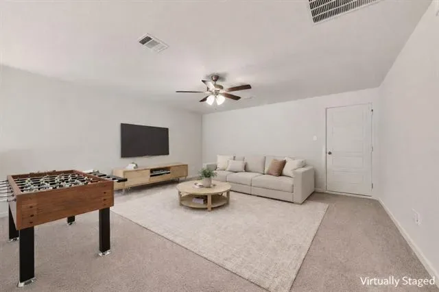 Beautiful curb appeal and lush landscaping set the tone for this inviting home, complete with a charming front porch that welcomes you in. Just off the entry, a versatile flex space offers endless possibilities—perfect as a sitting area, formal dining room or office. The bright, open-concept layout is ideal for both everyday living and entertaining. At the heart of the home, the chef’s kitchen features a large island, granite countertops, gas cooktop, in-wall oven and microwave, and a spacious pantry, all flowing seamlessly into the well-lit dining area and expansive family room with plenty of wall space. The private primary suite offers a relaxing retreat with dual sinks, a garden tub, separate shower, and a walk-in closet. A downstairs guest bedroom and full bath provide added convenience for visitors or multi-generational living. Upstairs, enjoy a spacious game room perfect for entertaining, along with two generously sized bedrooms and a 3rd full bath. Step outside to the covered patio—ideal for grilling and outdoor relaxation. Conveniently located with easy access to Loop 820 and Highway 377, and just minutes from shopping, dining, entertainment, and Haltom High School, this home offers both comfort and accessibility. Schedule your showing today!