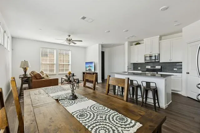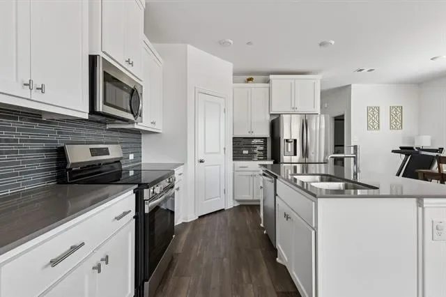 Welcome to 5123 Community Street, a stylish 2023-built townhome offering 3 bedrooms, 2.5 bathrooms, and approximately 1,828 square feet of thoughtfully designed living space in a highly desirable community setting. Positioned with an open view of a large community park with mature trees, this residence delivers a rare combination of modern construction, scenic surroundings, and everyday functionality that today’s buyers frequently search for when exploring newer homes. Inside, abundant natural light fills the open-concept main level, creating a bright and inviting environment ideal for both daily living and entertaining. The gourmet kitchen anchors the space with sleek quartz countertops, a generous center island designed for gathering, ample cabinetry, and a spacious pantry for convenient storage. The dining area offers comfortable room for a full dining table and connects seamlessly with the living space, creating a smooth flow throughout the home. Upstairs, a versatile loft-style second living area provides valuable flexible space that can easily function as a media area, workspace, fitness zone, or quiet retreat. The oversized primary suite overlooks the park and features two separate closets, offering excellent storage and organization. The primary bathroom includes modern fixtures and updated shower appliances, enhancing the home’s fresh, contemporary feel. Additional highlights include sound privacy between units, energy-efficient construction, and a tankless water heater that supports modern efficiency and comfort. A secondary utility-ready space on the second floor adds further flexibility for storage or household organization. With newer construction, attractive finishes, and scenic park views, this move-in ready property offers the convenience, design, and low-maintenance lifestyle many buyers seek in today’s market.