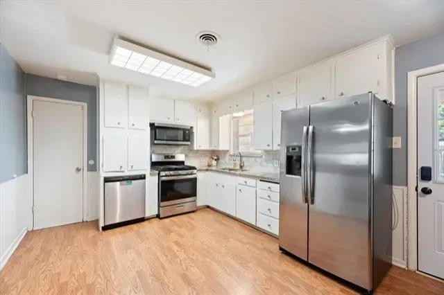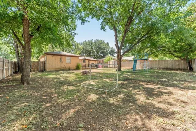 This delightful home features a covered front porch, mature trees, and an abundance of character. Step inside to a cozy front living room that flows into a beautifully updated kitchen, complete with white cabinetry, stainless steel gas appliances, a stone backsplash, and sleek granite countertops. The two generously sized secondary bedrooms are filled with natural light. The primary suite offers a private walk-in closet and an en-suite bathroom featuring modern tile, and granite counters. The hall bathroom is equally impressive, with granite countertops and a shower-tub combo. Outdoors, you''ll find a spacious wooden deck, a storage shed, raised garden beds, and tons of yard space to run around on. The 2-car garage includes laundry facilities, extra storage, and a convenient access door to the backyard. Ideally located near major highways, shopping, and dining right in the heart of Haltom City.