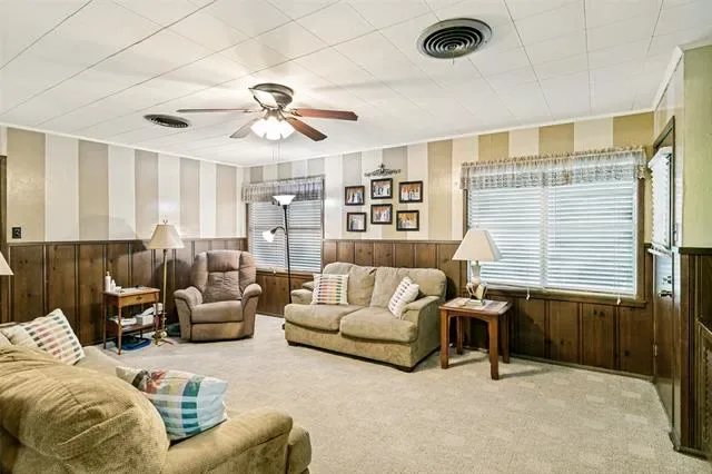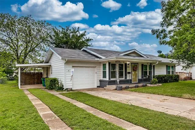1816 Eden Ave, Haltom City, TX — offers a lot of space and functionality in a clean, well-maintained, single-story ranch-style layout. This 3-bed, 1.5-bath home features an open floorplan with living, dining, kitchen, den, and a large sunroom-laundry area that adds flexibility for everyday use. The exterior features steel siding, a gabled roofline, and a covered front porch – great for enjoying coffee in the mornings. This home is sitting on a sizeable .363 AC lot with fencing (be sure to checkout the area behind the 6-ft privacy fence), storage shed, &' sprinkler system. The home is well maintained with some key upgrades including newer, vinyl double-pane windows (front &' bedrooms), HVAC R-410A.SEER 16 (with gas furnace), gas hot water heater, &' roof (~3yo). The galley kitchen is well arranged with dishwasher, disposal, abundant cabinetry, good counter space, and a separate pantry located in the garage area. The large, 20×13 den with built-ins is a standout space and gives the home extra room to hang out, relax, or entertain. Bonus 16×13 sunroom doubles as a laundry storage area – complete with heat &' air (and not counted in sq-ft). There is also a 1-car garage (with pantry &' workshop area) plus 1-car carport, gutters &' downspouts. Mature trees on the lot provide shade and help frame the home nicely.
