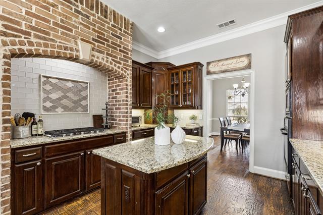 Nestled in a quiet, established neighborhood within the highly sought-after Northwest ISD, this 4-bedroom, 3-bathroom home offers the perfect balance of open-concept living and private retreat. Step through the inviting front entry into a light-filled foyer, expansive windows and versatile flex spaces. Whether you require a home office, a library, or a second living area, these rooms adapt to your lifestyle. Spacious family room anchors the home with a cozy fireplace, making it the ultimate hub for entertaining. Step into the timeless kitchen featuring rich custom cabinetry, gleaming granite countertops, and gas cooktop. Breakfast area you will find large windows with views of the spacious backyard and pool.