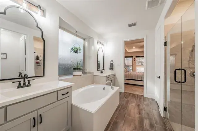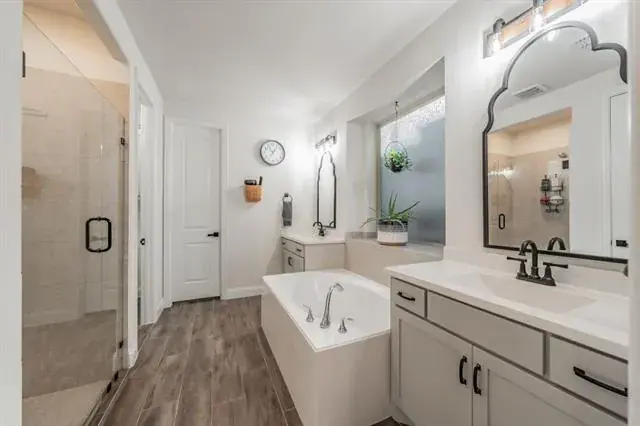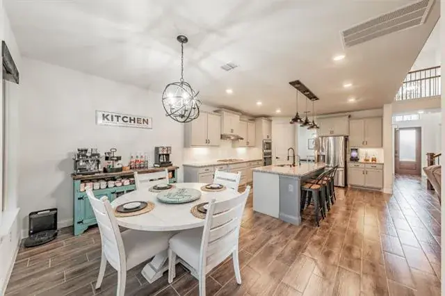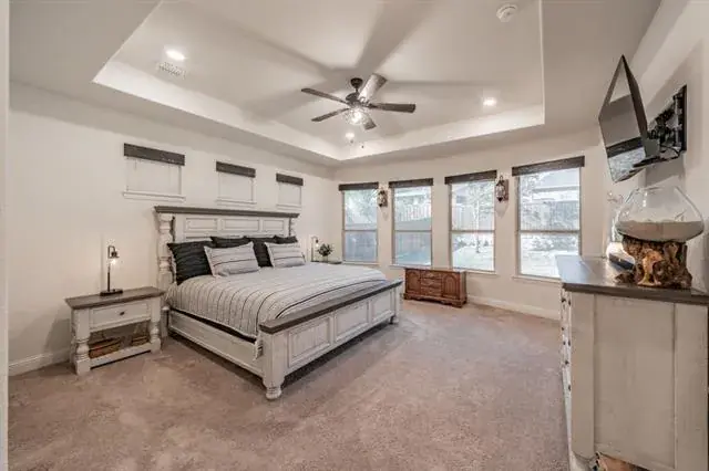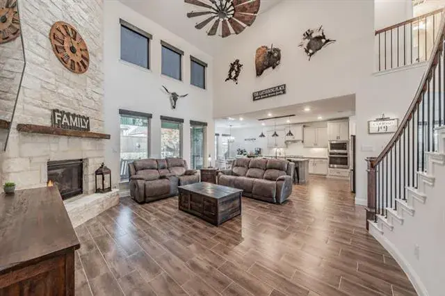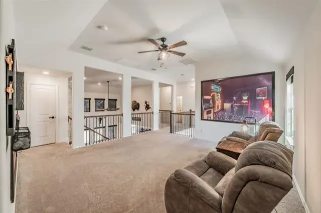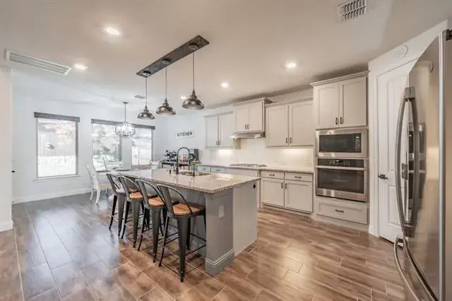 Impeccably maintained and move-in ready! This exquisite 3546 sq. ft. home offers 4 bedrooms, 3.5 baths, and a perfect blend of style, functionality, and coziness. The open-concept layout is ideal for family gatherings, with a front exposure that gives you breathtaking sunrises and stunning sunsets out the back. The living room, game room and media room provide ample space for entertainment, while the kitchen features elegant grey cabinets, black hardware, and beautiful granite countertops. Step outside to the covered back patio, a private retreat for relaxation or hosting guests. Located in nice neighborhood, convenient access to shopping, dining, entertainment & major highways. Don’t miss out on this exceptional property. Schedule your showing today!*** UPGRADES *** *** Cabinets above toilets *** *** Frameless shower tub enclosures ****** EcoWater water softener system ****** RO system in kitchen ****** Solar screens on 3 sides of home ****** Solar blinds inside on all windows ****** Stone Fireplace (up to ceiling) ****** Stone front flower beds ****** All black ceiling fans, door handles ****** Black faucets custom vanity mirrors ****** Jellyfish exterior lighting *** *** Exterior up lighting ****** Garage Cabinets & Work bench ****** 124 sq. ft. Decked Attic storage ***