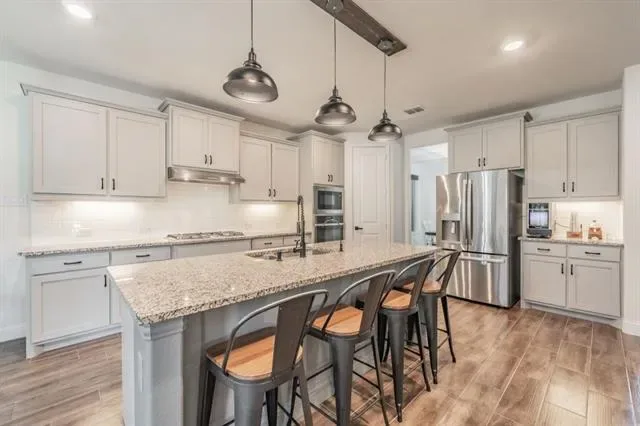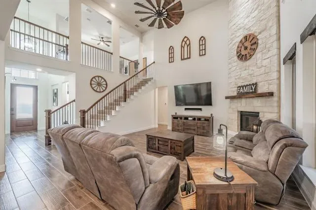 Impeccably maintained and move-in ready! This exquisite 3546 sq. ft. home offers 4 bedrooms, 3.5 baths, and a perfect blend of style, functionality, and coziness. The open-concept layout is ideal for family gatherings, with a front exposure that gives you breathtaking sunrises and stunning sunsets out the back. The living room, game room and media room provide ample space for entertainment, while the kitchen features elegant grey cabinets, black hardware, and beautiful granite countertops. Step outside to the covered back patio, a private retreat for relaxation or hosting guests. Located in nice neighborhood, convenient access to shopping, dining, entertainment & major highways. Don’t miss out on this exceptional property. Schedule your showing today!*** UPGRADES *** *** Cabinets above toilets *** *** Frameless shower tub enclosures ****** EcoWater water softener system ****** RO system in kitchen ****** Solar screens on 3 sides of home ****** Solar blinds inside on all windows ****** Stone Fireplace (up to ceiling) ****** Stone front flower beds ****** All black ceiling fans, door handles ****** Black faucets custom vanity mirrors ****** Jellyfish exterior lighting *** *** Exterior up lighting ****** Garage Cabinets & Work bench ****** 124 sq. ft. Decked Attic storage ***