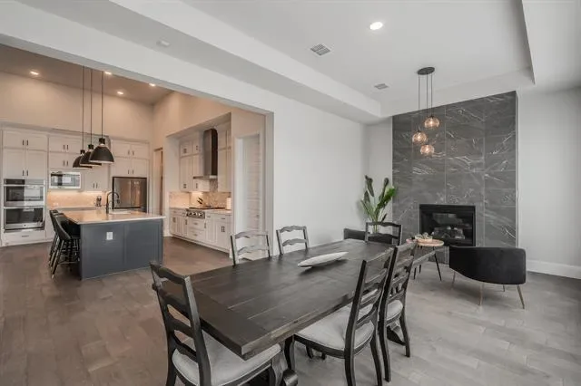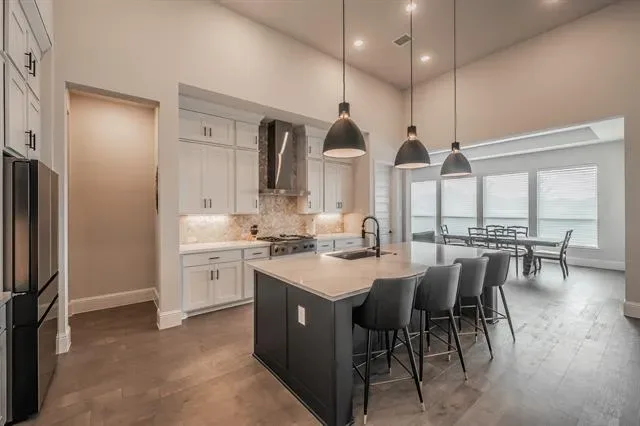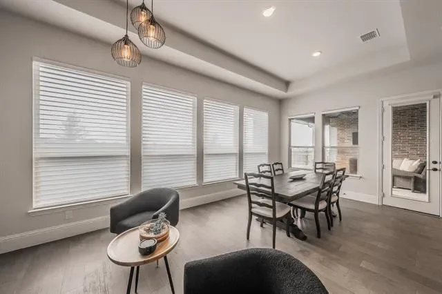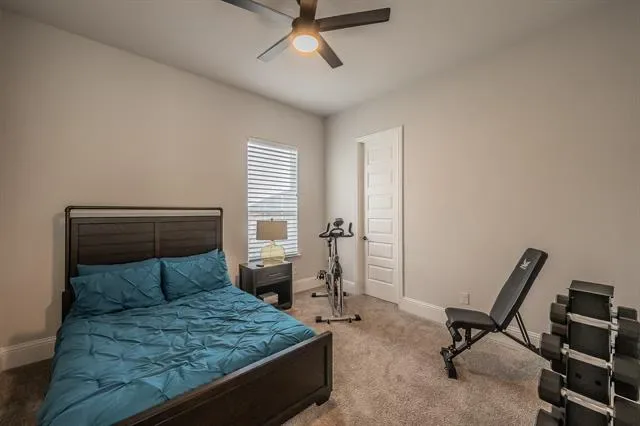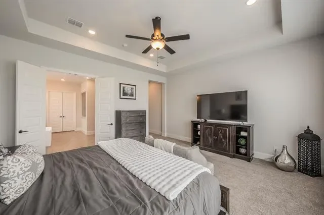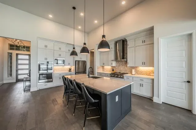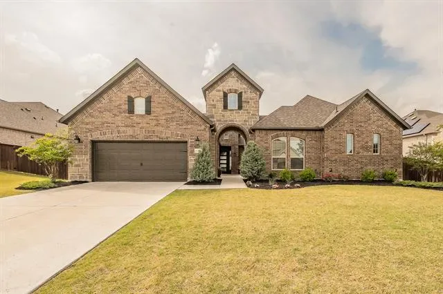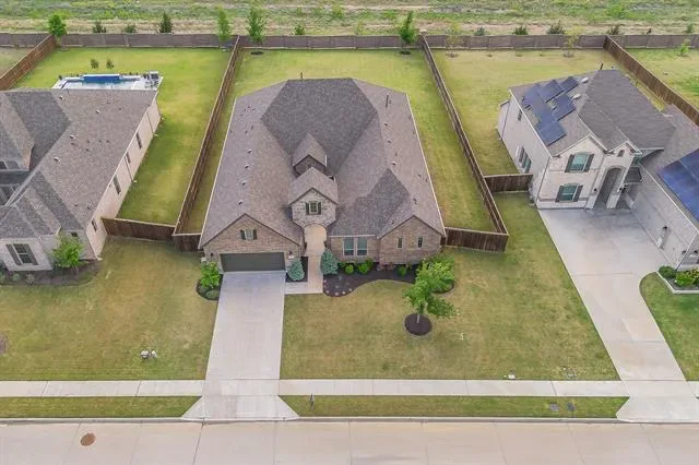 Schedule your private showing today to experience this stunning custom-built home (2022), ideally situated on a quiet cul-de-sac in the heart of Haslet. This spacious residence features four bedrooms, three and a half bathrooms, and a thoughtfully designed modern layout that includes a media room, game room, family living area, and a private office. The home is equipped with premium upgrades such as motorized blinds, smart home features, and a tank-less water heater. Designed with comfort and flexibility in mind, the property offers two en-suite bedrooms. The luxurious primary suite includes a spa-like bathroom (16×10) with a separate soaking tub and walk-in shower, dual vanities, and a generous walk-in closet. A private guest suite with its own bedroom and full bath provides ideal accommodations for extended family or visitors. The open-concept living spaces are filled with natural light and flow seamlessly into the kitchen and dining areas, creating the perfect setting for entertaining. Situated on an expansive lot, the outdoor space features a large covered patio and wood fencing for added privacy. The three-car tandem garage includes an EV charging station for modern convenience. Located in the highly sought-after Caraway Addition, this exceptional home offers both comfort and exclusivity. Come experience everything it has to offer.