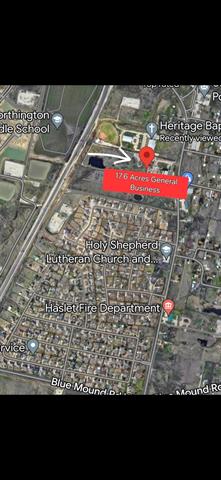 14.6 acres of PRIME Commercial Land at 1204 S State Hwy 156, Blue Mound rd, in Haslet. Road access has 2 entrances. One at each end of the 425ft road frontage! The FIRST tract of land adjacent to and across from a well populated residential area. Haslet is reported to be the 10th fastest growing City in the State with an annual growth rate of appx 13%. Currently Zoned General Business but the City of Haslet would allow residential if desired. Appx 6 miles to Alliance airport, 30 miles to DFW airport, 3 miles to I35, 6 miles to Business 287. Current Business is a Nursery with all Public utilities already in use. Awesome to have utilities while you build on your new location. No known deed restrictions. Buyer to verify all information. Maps, Plats, easement, and other information available. Additional 3 acres for well pad site will convey if buyers desires at no cost to buyer, making total of appx 17.6 acres. Check with the City about subdividing up the property if that is what you would like to do. Although there are no known deed restrictions, this land is in the City of Haslet limits and buyer will need to verify that their intent for use is acceptable. No Semi Truck Parking. No manufacturing. Retail sales, and services are allowed. I can send you a link for the General Business list on the City Website.