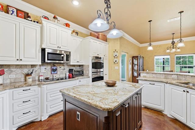 THE BEST OF BOTH WORLDS! Come enjoy peaceful country living with city conveniences just minutes away at this stunning custom home that sits on a spacious 2.5-acre lot, offering endless possibilities for wide-open living, hobby farming and room to live your BEST LIFE! The property is fully equipped with a secure gated entry, fenced acreage ready for horses and multiple outbuildings. Two outdoor workshops, complete with air-conditioned office space and a bathroom provide incredible flexibility for running a home business, storing equipment, or housing your car collection! There’s even a HUGE garage-workshop with room for an RV, boats or all your adventure equipment! The charming front porch leads to a warm, inviting home designed for both everyday living and entertaining. Inside, you’ll find Texas-sized bedrooms, including spacious secondary rooms and a private primary suite featuring a spa-inspired bath and direct access to the covered back porch, perfect for enjoying peaceful sunrise views. Large living area with gas fireplace where guests can gather and memories are made! The gourmet island kitchen is the heart of the home, with granite countertops, stainless steel appliances, and large pantry. A light-filled sunroom offers the perfect retreat for relaxation. Large flex space off the living room could be game room, office, media room or a 5th bedroom! Outside, enjoy the wide-open spaces with plenty of pasture, loafing shed for livestock and chicken coop ready for your farm-fresh eggs. Built with quality in mind, the home features an engineered slab with piers and a spray foam attic for enhanced energy efficiency. A private well = NO WATER BILLS plus save more $ with NO CITY TAXES and NO HOA! Recent updates include a replaced roof and HVAC system, newer water heater, and well pump, giving peace of mind for years to come. If you’re looking for country living at its finest with modern comforts and room to grow, this exceptional property is ready to welcome you home!