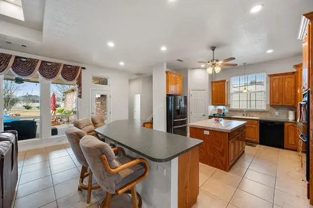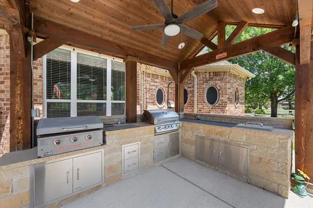 **Accepting BACK-UP OFFERS** Executive, one-owner custom home tucked away on a quiet cul-de-sac in the sought-after Highlands at Willow Springs community. Thoughtfully built with attention to quality construction and long-term performance, this home reflects the kind of craftsmanship that shows in both visible finishes and behind-the-scenes details such as foundation, structure, and insulation. The backyard is a true private retreat designed for everyday enjoyment and exceptional entertaining. Lush, fully irrigated landscaping surrounds a covered patio that functions as a second living space, complete with an outdoor kitchen, pool, and putting green. Privacy and functionality are prioritized throughout the outdoor space. A standout feature of the property is the 36×50 insulated metal workshop, offering electric service, roll-up doors, and mezzanine storage. Large enough to accommodate an RV, this space provides flexibility for hobbies, storage. Located in a vibrant community in Northwest ISD, known for festive traditions including 4th of July parades, seasonal celebrations, and neighborhood events, this home offers a rare blend of privacy, lifestyle, and quality construction.