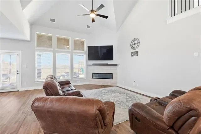 Discover the ultimate tech-forward sanctuary for your family in Haslet, nestled in a safe, community-focused neighborhood within the premier Northwest ISD. This impeccably maintained 5-bedroom home is a fully integrated Smart House: control lights, locks, temperature, and garage doors right from your phone! The expansive layout features soaring ceilings, two large living areas, a dedicated media room, and the downstairs 2nd bedroom, which is currently used as a private gym. A dream kitchen open to the living area has a large island, stainless steel appliances, and a butler’s pantry, making hosting effortless! The large private backyard includes a swing set for the kids. Enjoy peace of mind with the remaining 5 and 10-year builder warranties plus incredible HOA amenities, including a resort-style pool, pocket parks, and walking trails with fitness stations. Perfectly situated near the Alliance corridor, this home offers the space, top-tier schools, and security your family deserves. Luxury and convenience—all in one place!