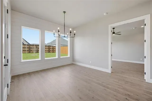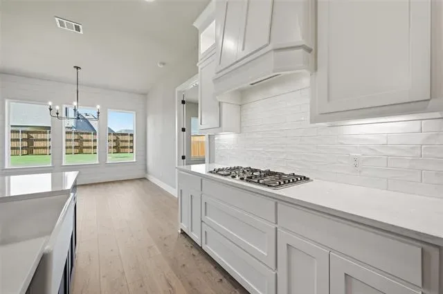A must see in this brand new sub division in Haslet! Brand new home with open floorplan, lots of square footage and room for family. Kitchen overlooking huge Cathedral ceiling living area with huge island, also has Fireplace, and custom shaker cabinets. Isolated Master suite with large walk in master closet that connects to massive oversized utility and craft room, with an island. Upgraded Quartz countertops and upgraded Luxury laminate flooring in all main areas. White Cabinets, white and grey color scheme. Includes huge covered back patio for entertaining. The community facilities include: Community Pool, Walking Trails and Park. New Construction, approximate completion date of June 2025.