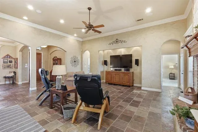 BEST OF BOTH WORLDS! Come enjoy quiet country living with room inside and out in this beautifully crafted custom home tucked away on a spacious one-acre lot on a quiet street in the highly sought-after Lonesome Dove Estates! Designed with both everyday living and entertaining in mind, this home blends high-end craftsmanship with a bright, open layout. With a rare 5 bedrooms and 4 full baths, there’s no shortage of space for family, guests, or multi-generational living. Oversized secondary bedrooms and a thoughtful split-bedroom design ensure privacy for all, whether you’re welcoming aging parents or boomerang kids back home!