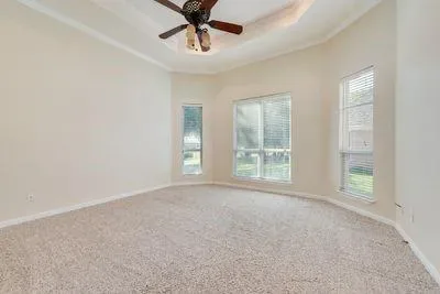 Wonderful country style living with no city taxes and no water and sewer bill. Easy access to freeways and shopping. This one owner, single story beauty has all the room a family needs with 4 bedrooms and 2 living and dining areas. This home is split 2 ways with 2 bedrooms on one side of the home and 2 on the other. The kitchen has an abundance of cabinets with corian counters as well as a pantry. Enjoy the master bath with jetted garden tub, stand alone shower and double sink vanities. The 3 car garage will be plenty roomy for your riding mower and other vehicles. There will be low maintenance as the exterior has vinyl siding with gutters and the home just got new neutral inside paint. The utility bills will be helped with the many ceiling fans throughout the home and the entire home is on a private well. Relax on your covered patio overlooking the many trees without a neighbor right next to you.