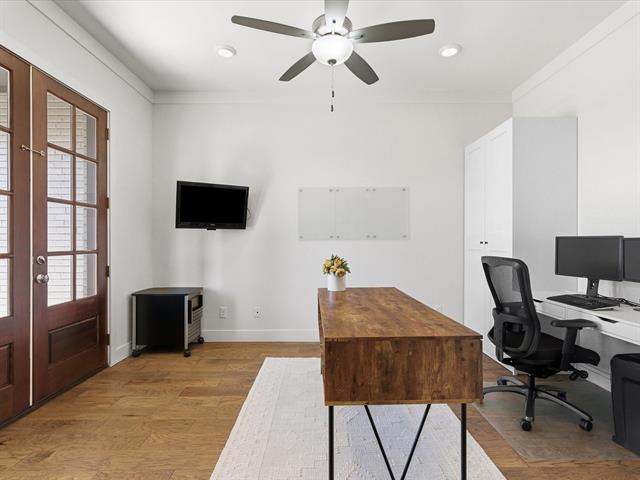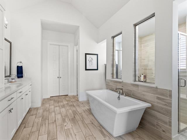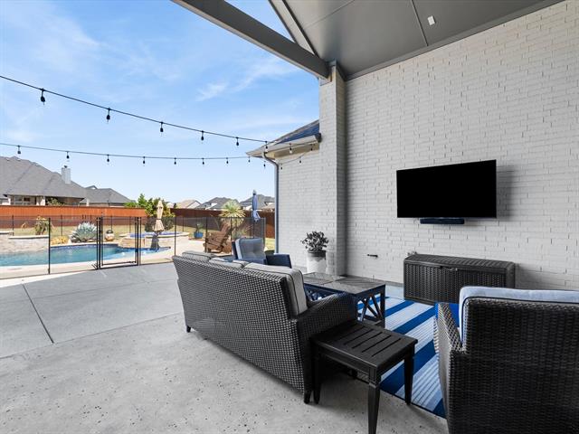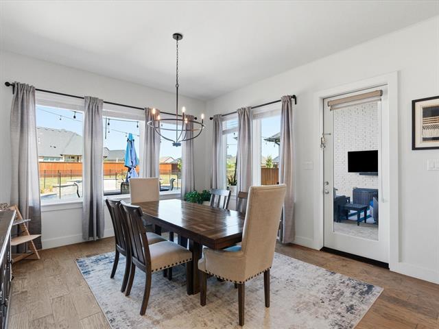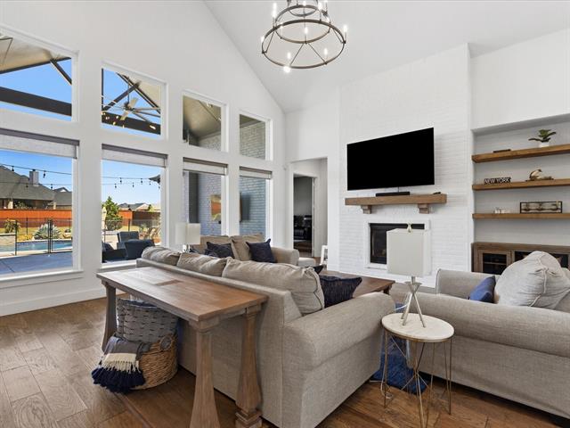 This immaculate 4-bedroom, 4.5-bath home offers luxury, comfort, and modern living on a spacious ½-acre lot in the highly sought-after Northwest ISD. Step inside to find beautiful hardwood floors flowing through the main living areas, soaring vaulted ceilings, and a thoughtfully designed open floor plan perfect for entertaining. The gourmet kitchen features sleek quartz countertops, a large center island, stainless steel appliances, and ample cabinetry—ideal for both everyday living and hosting guests. The private study provides the perfect space for working from home or quiet reading. Every bedroom includes its own bath, offering privacy and convenience for family or guests. The smart home system keeps comfort and security at your fingertips. Step outside to your own backyard retreat, complete with a sparkling pool, relaxing hot tub, and plenty of space to play or unwind. Home offers a spacious 3-car garage. With top-rated schools, modern amenities, and timeless finishes, this home truly has it all.
