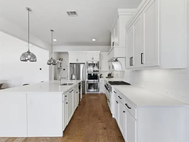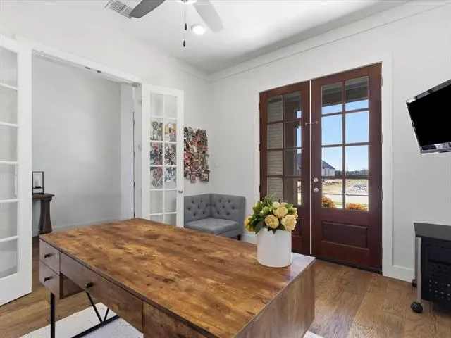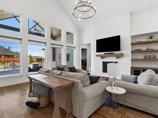 OPEN HOUSE SATURDAY 4-23-2026 FROM 12PM-2PM. This immaculate 4-bedroom, 4.5-bath home offers luxury, comfort, and modern living on a spacious ½-acre lot in the highly sought-after Northwest ISD. Step inside to find beautiful hardwood floors flowing through the main living areas, soaring vaulted ceilings, and a thoughtfully designed open floor plan perfect for entertaining. The gourmet kitchen features sleek quartz countertops, a large center island, stainless steel appliances, and ample cabinetry—ideal for both everyday living and hosting guests. The private study provides the perfect space for working from home or quiet reading. Every bedroom includes its own bath, offering privacy and convenience for family or guests. The smart home system keeps comfort and security at your fingertips. Step outside to your own backyard retreat, complete with a sparkling pool, relaxing hot tub, and plenty of space to play or unwind. Home offers a spacious 3-car garage. With top-rated schools, modern amenities, and timeless finishes, this home truly has it all.