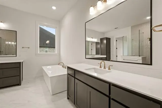 The owner''s suite occupies its own private wing on the right side of the home, offering serene views of the lush backyard. The spa-inspired owner''s bath features a large walk-through shower, a freestanding soaking tub, dual vanities, and a spacious walk-in closet that conveniently connects to the laundry room. Next to the owners suite, is the private owners study.