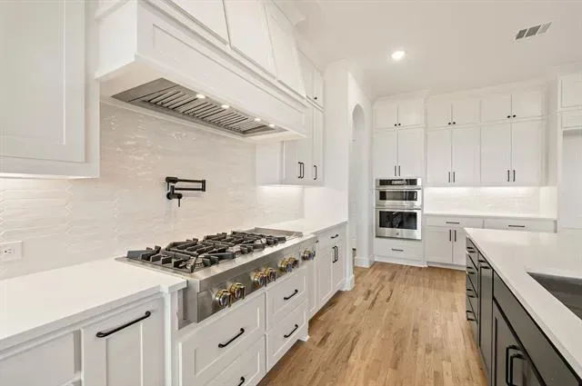 The owner''s suite occupies its own private wing on the right side of the home, offering serene views of the lush backyard. The spa-inspired owner''s bath features a large walk-in shower, a freestanding soaking tub, dual vanities, and a spacious walk-in closet shared bath.
