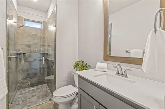 Your private resort-style retreat awaits—where a sparkling pool with cascading waterfalls, tanning deck, and hot tub anchor expansive outdoor living spaces designed for exceptional Texas evenings. Artificial turf, fruit trees, raised garden beds, and a covered patio with fireplace create the perfect setting for both relaxation and entertaining.