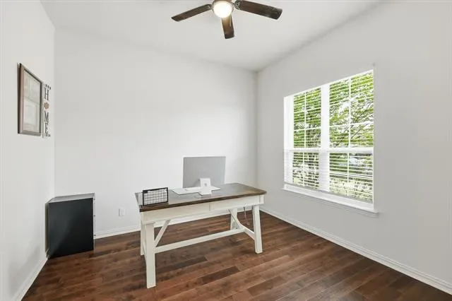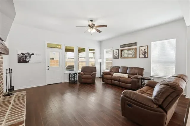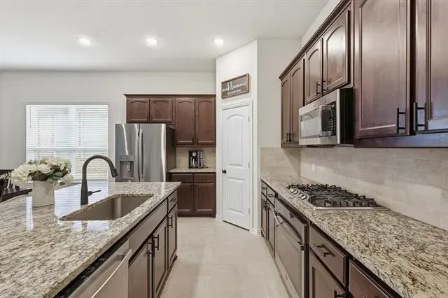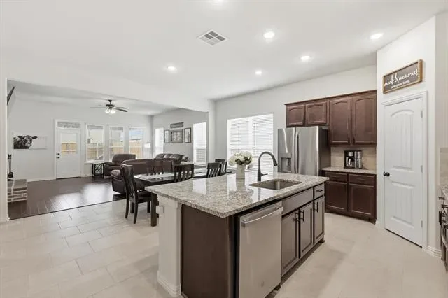 BETTER THAN NEW &' MOVE-IN READY! Come make your dream of homeownership a reality in this lightly lived-in gem built by Riverside Homebuilders! Designed with both comfort &' style in mind, this home offers an open-concept floorplan ideal for entertaining and everyday living. Step inside to a welcoming entry featuring a private office with French doors, perfect for working from home. The island kitchen is truly the heart of the home, showcasing brand NEW stainless steel appliances, granite countertops, a walk-in pantry &' an abundance of cabinetry and prep space, making cooking &' hosting effortless here! The spacious living area is filled with natural light from oversized windows and anchored by a cozy gas fireplace, all complemented by stunning hardwood floors! Enjoy privacy with a split-bedroom layout. The primary suite is a relaxing retreat with a spa-like bath featuring dual vanities with upgraded mirrors, a soaking tub, separate shower &' private lavatory. Generously sized secondary bedrooms offer ample closet space for everyone. Additional highlights include a utility room plus a mudroom to keep life organized and running smoothly. Step outside to an extended covered patio, perfect for grilling, entertaining or simply unwinding while overlooking the large backyard with plenty of room for pets and play. Save on utilities with energy-efficient features and foam insulation! Ideally located within walking distance to Northwest ISD’s sought-after Carter Elementary School. Enjoy resort-style living in the Northstar community with access to parks, pool &' clubhouse amenities. Perfectly positioned near SH 287, this home offers seamless access to shopping, dining, and major business hubs, including Alliance Town Center and Presidio Towne Crossing while still providing a peaceful, tucked-away feel. This home truly has it all so don’t miss your opportunity to make it yours!
