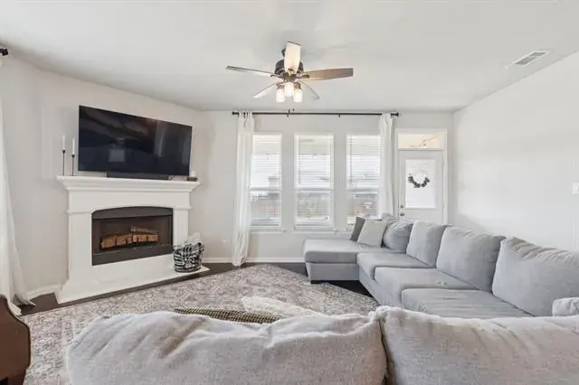 Welcome to this spacious family home in Haslet, Texas, featuring 4 bedrooms, 3.5 bathrooms, and a private home office on a large corner lot in the highly rated Northwest ISD. The open floor plan is perfect for family living, with a modern kitchen that includes stainless steel appliances, a large island, and plenty of counter space, all flowing into a cozy living room with fireplace.