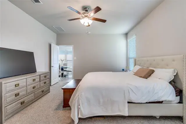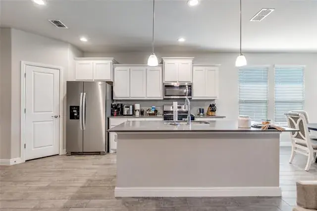 Charming One-Story in NorthStar! Set on a peaceful street in the sought-after NorthStar neighborhood and zoned to award-winning Northwest ISD, this beautifully maintained home feels practically brand new. The bright, open layout showcases a chef-inspired kitchen with stainless steel appliances, abundant cabinetry, pantry, electric range, built-in microwave, and a breakfast bar with extra seating. The kitchen and dining area flow naturally into the spacious family room—perfect for hosting friends or enjoying quiet evenings at home. The private primary suite offers a serene escape with dual sinks, a step-in shower, and a large walk-in closet. Two additional bedrooms provide flexibility for family, guests, or a home office.