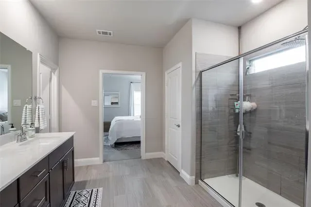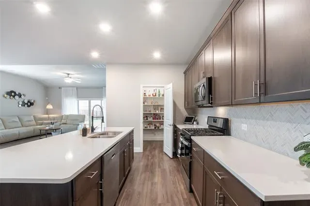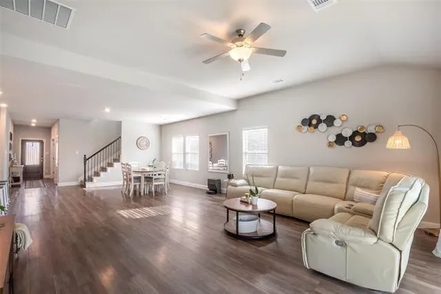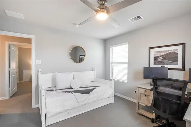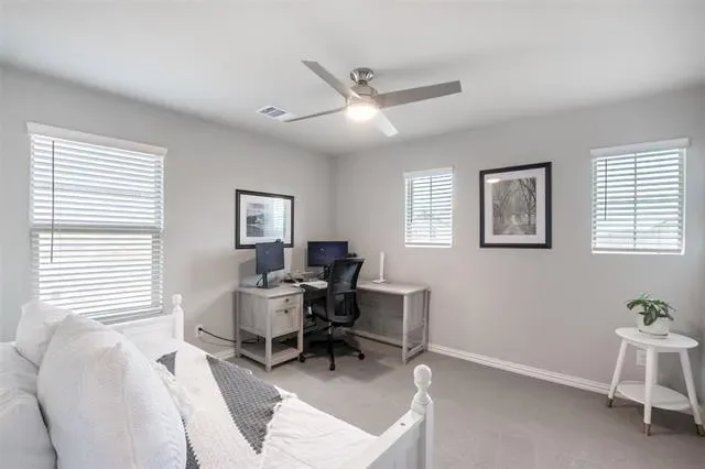 THIS MOTIVATED SELLER CAN OFFER A QUICK MOVE IN! Close to the highly sought after Carter Elementary in Northwest ISD. This beautiful approximately 3,101 square foot home offers four bedrooms and three and a half bathrooms, offering ample living space and thoughtful design. The primary bedroom features a calming en-suite bathroom with dual vanity sinks and overly spacious walk in closet. The large office provides a designated workspace, and the home’s open floor plan creates a welcoming and connected living area. The open-concept layout creates a seamless flow between the living room, dining area, and kitchen. The kitchen is equipped with stainless steel appliances and ample counter space. An oversized pantry provides abundant storage. Sliding glass doors in the living room provide easy access to the backyard. The kitchen features a large eat-in bar, seamlessly integrating with the dining and living areas. Throughout the home, there is an abundance of storage in every room, ensuring an organized and efficient living experience. The attached garage offers additional storage space. The secondary bedrooms are located upstairs and all are above-average in size, allowing for flexible use of the spaces. There also a large great room upstairs. Additionally there is are two more full bathrooms. The extra-large backyard offers room for outdoor enjoyment. The home is situated on a lot of approximately 0.5 acres, providing ample outdoor living space to possibly have an inground pool. This property presents an opportunity to create a comfortable living environment, without having to wait for new construction. You can move in right away to this three year old like new home!