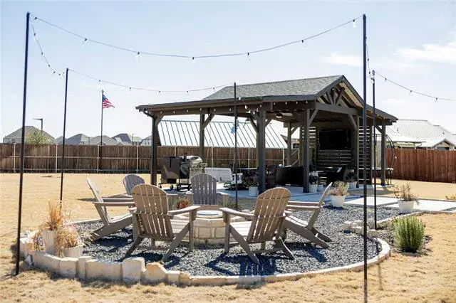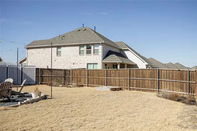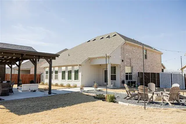 Welcome home to this barely-lived-in 2023 History Maker beauty in Haslet — where modern comfort meets real-life livability. From the moment you arrive, the inviting front porch sets the tone for slow mornings, evening chats, and finally enjoying your own slice of home. Sitting on an oversized lot made for entertaining, the backyard is truly next level. You’ll love the large covered pavilion with space to cook out, enjoy TX weather, and host game-day watch parties, plus a landscaped fire pit that makes cozy nights with friends and family feel extra special. The cherry on top? Direct gated access from your backyard straight to the community pool — a rare and super convenient upgrade you don’t see often. Inside, the home offers a flexible 4-bedroom, 3-bath layout with two bedrooms and two full baths downstairs. The front bedroom is perfect for a private home office with built-in storage cabinets, full bathroom, and a split floorplan that keeps it tucked away from the primary retreat — ideal for working from home or hosting guests. The sellers elevated this home with custom wainscoting and designer accent walls both upstairs and downstairs, giving the space that extra “model-home” feel without losing warmth. The living room features built-in cabinetry and a fireplace insert, creating a cozy yet polished space to gather. The oversized kitchen is a true heart-of-the-home moment — offering abundant cabinet storage, a large walk-in pantry, and a spacious island that easily handles entertaining, homework time, and everyday life. Upstairs, you’ll find a spacious game room plus two additional bedrooms, each with walk-in closets and generous storage — because we all know storage matters! The HOA includes a community pool, clubhouse, playgrounds, and much more, making it easy to enjoy your neighborhood without leaving home. This is the kind of Haslet home that checks the boxes — space, style, location, and backyard vibes!