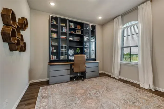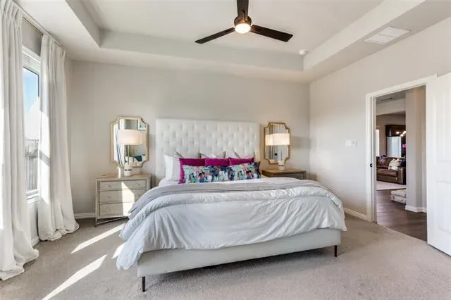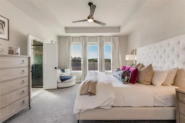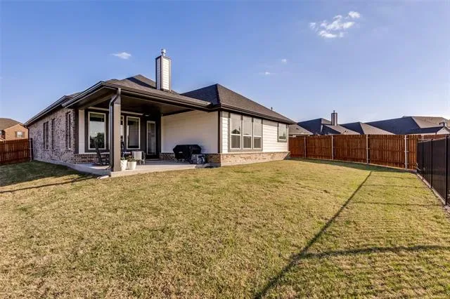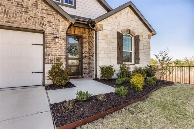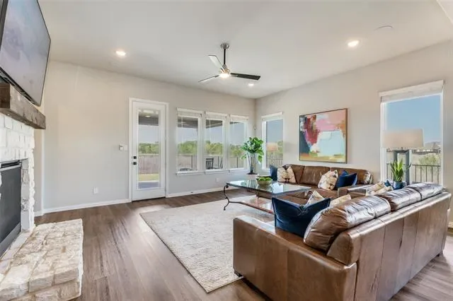 Experience luxury living in this exceptional custom home, perfectly situated on a rare, oversized cul-de-sac lot backing to 20+ acres of pristine greenbelt and pastureland. With sweeping, unobstructed panoramic views from the kitchen, dining, living area, and primary suite, this property offers a truly one-of-a-kind setting. The thoughtfully designed open-concept floor plan features a split-bedroom layout filled with natural light and enhanced by upscale finishes throughout—designer lighting, upgraded flooring, custom doors, decorator paint, built-in speakers, and a whole-home water softener. The expansive living room showcases an Austin stone gas fireplace and walls of windows that frame the breathtaking landscape, flowing seamlessly into the dining area and chef’s kitchen. The kitchen is appointed with Frigidaire Gallery stainless steel appliances, granite countertops, reverse osmosis system, upgraded fixtures, an oversized island with wraparound seating, and a spacious walk-in pantry. A private study with French doors sits just off the stately foyer. The luxurious primary suite is a serene retreat with incredible views, complemented by a spa-inspired bath featuring a large custom tile shower, extended vanities, and an impressive 13'' x 6'' custom closet with valet bars. Generously sized secondary bedrooms provide comfort and flexibility. Step outside to an oversized covered patio with lighting, ceiling fan, and gas hookup—perfect for entertaining—overlooking a large, fully irrigated yard with iron fencing designed to maximize the stunning 180+ degree views. Additional highlights include Energy Star certification, full foam encapsulation insulation, and security system with cameras and video doorbell. Ideally located within walking distance to Carter Elementary, the community pool, amenity center, and playgrounds, this home blends luxury, privacy, and convenience in a truly rare setting.