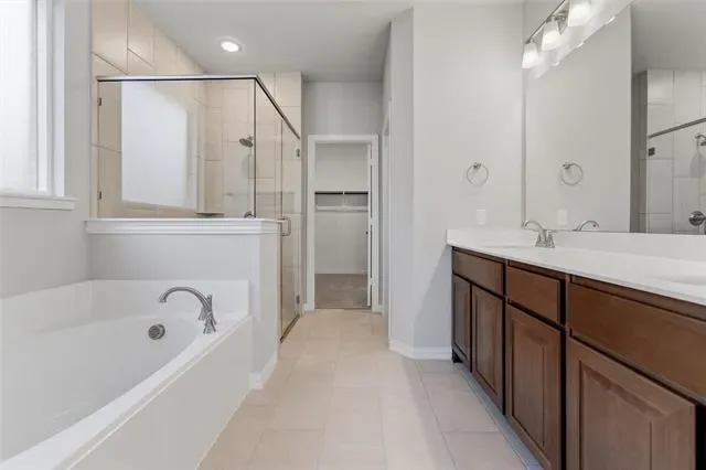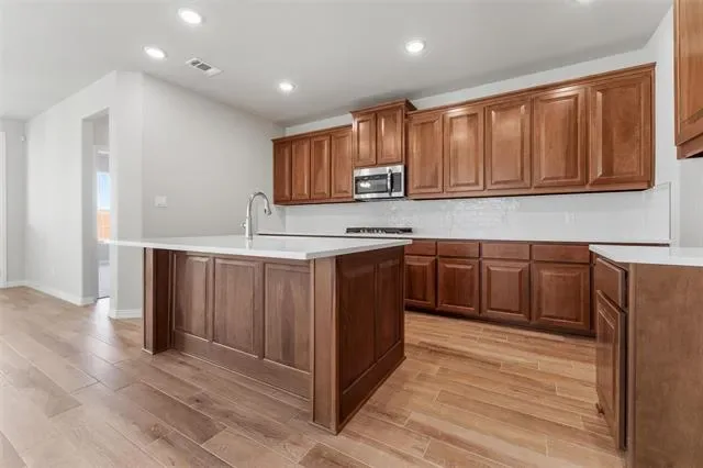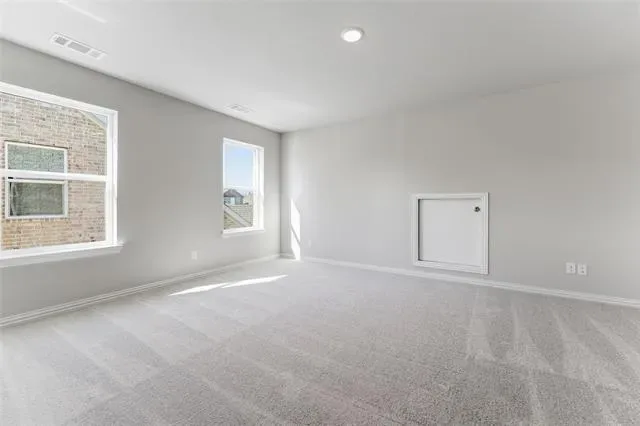 Ask us about our trade in, trade up program. We can buy your home! The four-bedroom Nueces floor plan is 2,858 square feet of functional living space. This two-story home was designed with every kind of homeowner in mind—it exemplifies the importance of togetherness by offering spaces for families to gather, as well as spacious bedrooms so every person has an area to call their own. Upon entering the home from the two-car garage, you’ll walk through the mudroom with a built-in storage bench and pass the walk-in pantry and separate laundry room. The gourmet kitchen includes an island with overhang for seating, extravagant storage options and lots of counter space. Past the kitchen is the open-concept dining and family room that can be laid out to meet the needs and style preferences of your family. Through a short hallway you’ll find the oversized owner suite with a double-sink bathroom, soaking tub, separate shower and walk-in closet. Finishing off the main floor is a powder room and a flex room toward the front of the house that can be used as a home office, virtual learning space or playroom. The second floor opens up to a multi-purpose loft that would make a perfect second family room. It also includes three bedrooms, each with their own walk-in closets, two full bathrooms and an additional storage closet. Outside spaces include a welcoming front porch and large covered patio adjoining the back of the house. Stunning interior lot located minutes away from play park, amenity center and on site elementary school. close to mailbox, full sod and irrigation with fencing. FIREPLACE, COVERED PATIO, TANKLESS WATER HEATERS, FULL FOAM INSULATION, ENERGY STAR CERTIFIED BUILDER, OWNER FINANCING AVAILABLE.