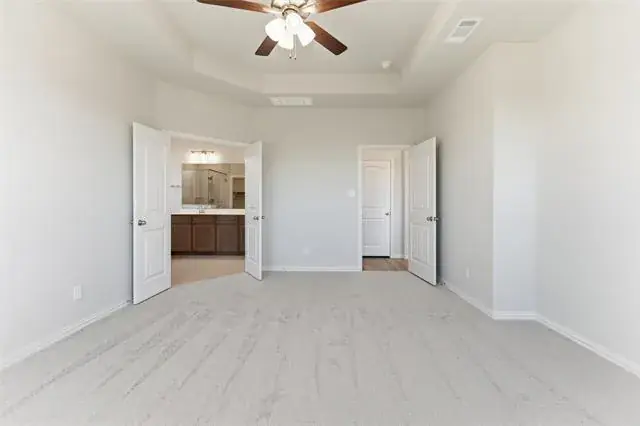 Estimated October 2025 completion! Ask us about our Trade In Trade Up program, we can buy your home! The San Saba has been a popular choice of homebuyers since we first introduced it. With the San Saba III, Riverside Homebuilders has taken the best features and expanded this flexible home design. The owner’s suite maintains the elegance of the tray ceiling in the bedroom and the spacious, smart design of the en suite bathroom—with both a soaking tub and walk-in shower, plus dual vanities and private water closet. In the San Saba III, the open concept spans the full length of this single-level home. We’ve situated the kitchen a bit differently, making it quicker to access the laundry and mudrooms by the garage’s family entrance. The pantry is incorporated into the mudroom space, so unloading groceries is a simpler task. With the entrance from the foyer, the flex room in the San Saba III can easily function as a formal dining or living room. Add double doors, if you like, and the space works well as a home office or study. Maybe you want a fourth bedroom in your new home. This room is standard with a closet so it can easily be adapted to fill that role. The open concept in the main living area and the thoughtful placement of the bedrooms with vestibule entry presents the perfect balance of togetherness and privacy. Add in the covered patio for an outside living space that extends the comfort of this Riverside home.