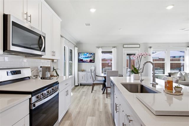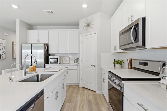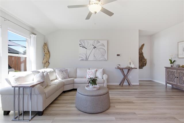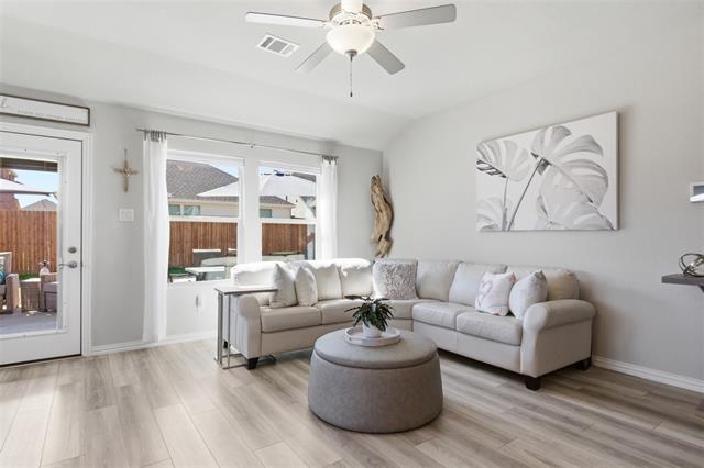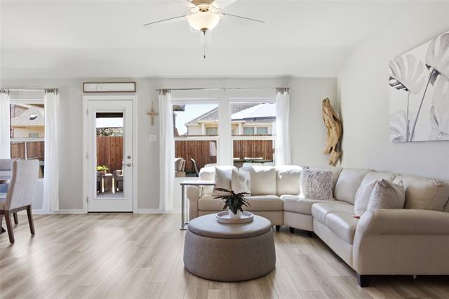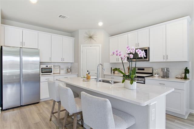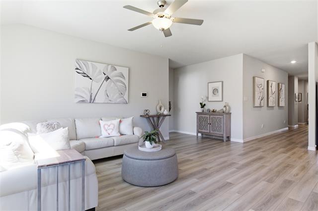 If you are looking for a meticulously maintained and move in ready home in the Haslet area, this one is it! Built in 2022, this 4 bed, 3 full bath home is ready for its new owners. This property has great curb appeal with its moody stone and brick exterior and the interior is full of features and upgrades. Warm wood luxury vinyl plank flooring flows throughout the home and there are many windows creating a clean, bright and fresh interior. The kitchen is gorgeous with quartz countertops, white cabinetry, an island, stainless steel appliances and a pantry. If buyer is interested, the seller is open to selling the water softener. Enjoy the open floorplan which combines both the comfortable dining area and functional living room. The Primary bedroom is a retreat with an ensuite bathroom that has dual sinks, a walk in shower and large walk in closet. The 2nd bedroom or in law suite has it''s own private bathroom that has been upgraded to a walk in shower with sleek and modern grab bars. Not to be missed is a flex space that is currently being used as a tv room or can be utilized as a dedicated office space or formal dining room. The utility room is worth mentioning because it has extra space for a second refrigerator or a small freezer and a built in countertop with drawers that’s perfect for folding clothes. The fully fenced backyard is private and the sellers extended the concrete patio which allows both covered and uncovered outdoor living. The Northstar community has a pool and playground for outdoor activities and shopping conveniences such as Walmart and Lowes are less than a 10 minute drive away. A new Kroger grocery store is also being built next to the new 711 and is a 4 minute drive from this home! Come see this property in person and appreciate just how immaculate it has been maintained!