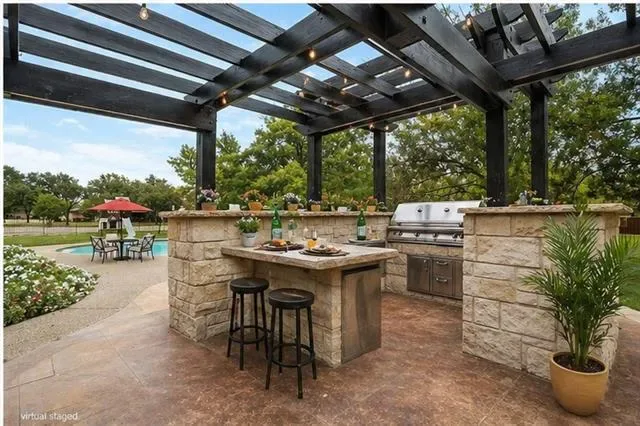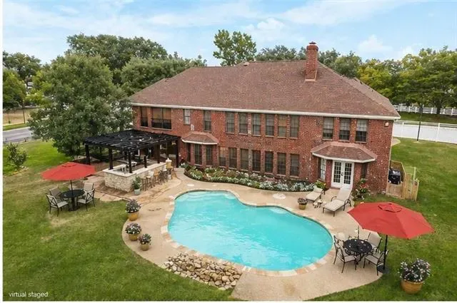 Experience a spacious pool home in Haslet designed for flexible living, elevated entertaining, and everyday comfort, featuring soaring ceilings, multiple ensuite bedrooms, and a resort style backyard with outdoor kitchen and balcony views, all set on a generous lot just minutes from Fort Worth. Located at 13510 Willow Springs Rd, this impressive home in Haslet offers a rare combination of space, function, and modern updates in an unincorporated area with minimal restrictions. Inside, the open concept layout is enhanced by dramatic 17-foot ceilings and expansive living areas filled with natural light. The kitchen is both stylish and highly functional, featuring granite countertops, glass front cabinetry, and high-end digital appliances with smart capabilities, all flowing seamlessly into multiple dining spaces including formal dining, a casual breakfast area, and bar seating for gathering. The home includes four bedrooms, with three offering private ensuite bathrooms, creating ideal separation for guests or multigenerational living. The primary suite is a true retreat with dual custom walk-in closets, built in organization, a soaking tub, tile flooring, and a beautifully finished walk-in shower, plus direct access to the backyard. A secondary suite option adds even more versatility. Upstairs, a large bonus room serves as a fifth bedroom, media room, or second living space, and opens to a private balcony overlooking the backyard. Step outside to a fully equipped outdoor living area featuring a sparkling pool with waterfall, outdoor kitchen, and a dedicated pool bath with exterior access and stand-up shower. Additional highlights include a home office with built in shelving, oversized closets, and extended parking space for multiple vehicles, trailers, or a boat. The property is serviced by a co-op water system, with HOA covering water only. A Matterport virtual tour is available. All information deemed reliable, buyer and buyer agent to verify all details.